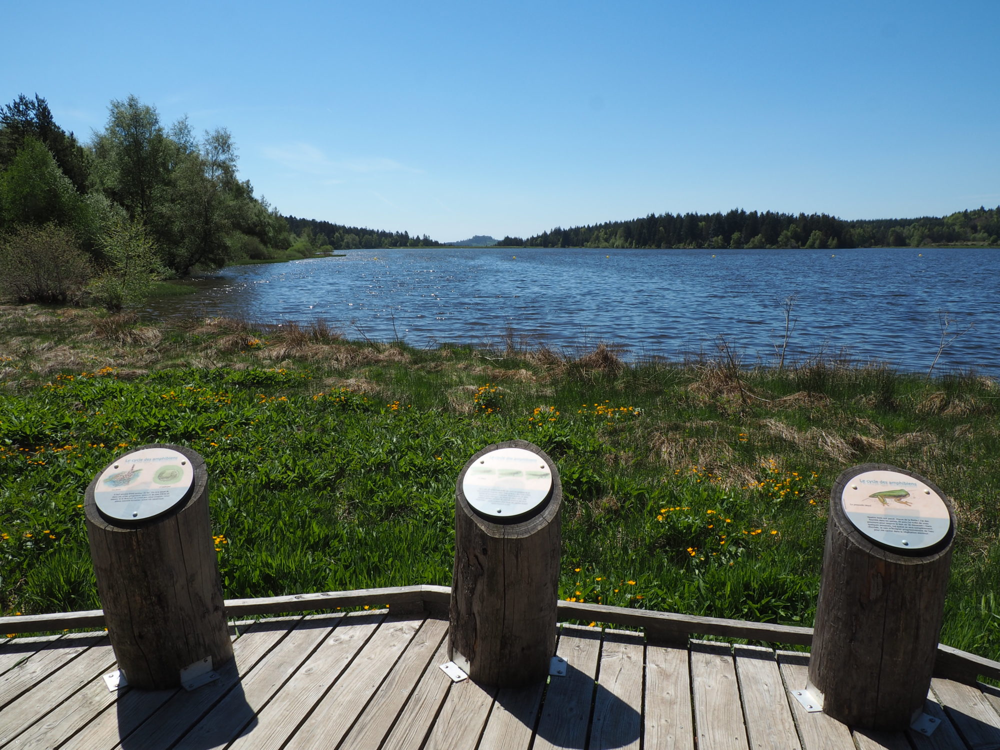 Un sentier pédagogique aménagé tout autour du lac avec une partie en caillebotis vous permet de partir à la découverte de ce milieu si particulier sans le mettre en danger, avec des indications pédagogiques interactives.
